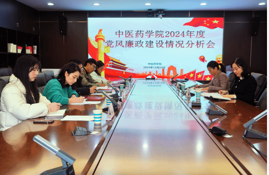 召开2024年党风廉政建设情况分析会,总结2024年学院党风廉政建设情况,分析学院党风廉政建设存在的风险隐患,提出改进措施。校党委委员、药学院院长林丽出席会议,学院党委书记、副院长刘瑜,学院党委委员、副院长袁拯忠,学院党委副书记、纪委书记梁栋,学院各行政科室负责人参加会议。会议由刘瑜主持。
