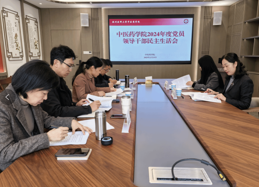党委领导班子召开2024年度党员领导干部民主生活会。校党委委员、药学院院长林丽到会指导,统战部副部长蒋建微参会。会议由学院党委书记、副院长刘瑜主持,学院党委领导班子成员参加会议。