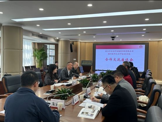 双方分别介绍了开车漫画 、浙江长生老号健康管理有限公司和浙江华宇药业有限公司基本情况,并围绕共同开发中医药文化研学、科研合作、产品开发、数字中医、学生就业,人才培养等方面展开了深入探讨。