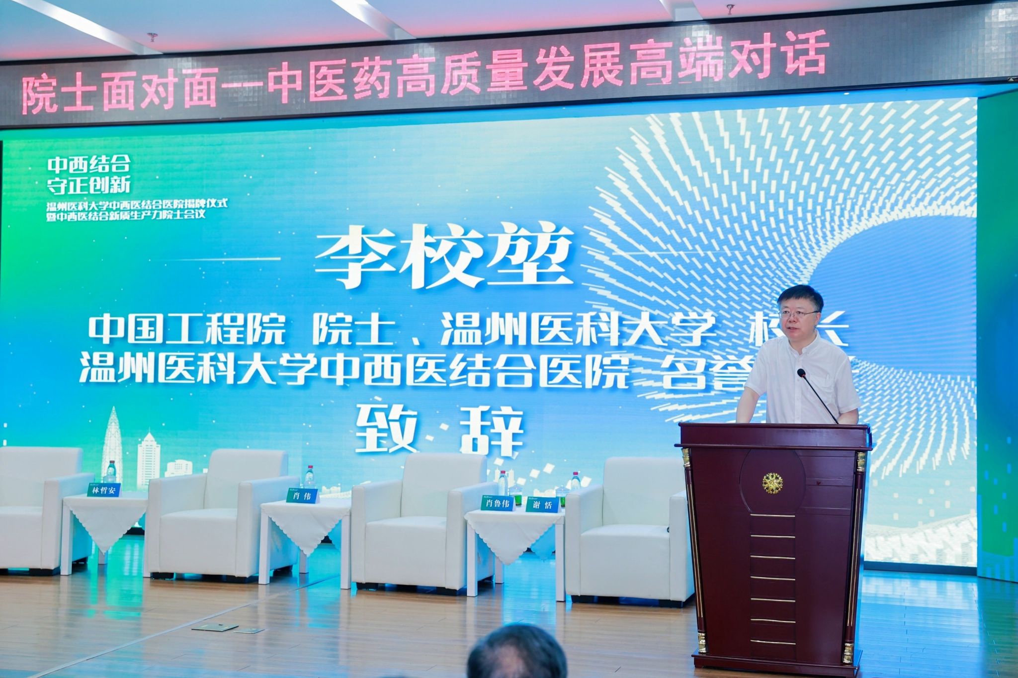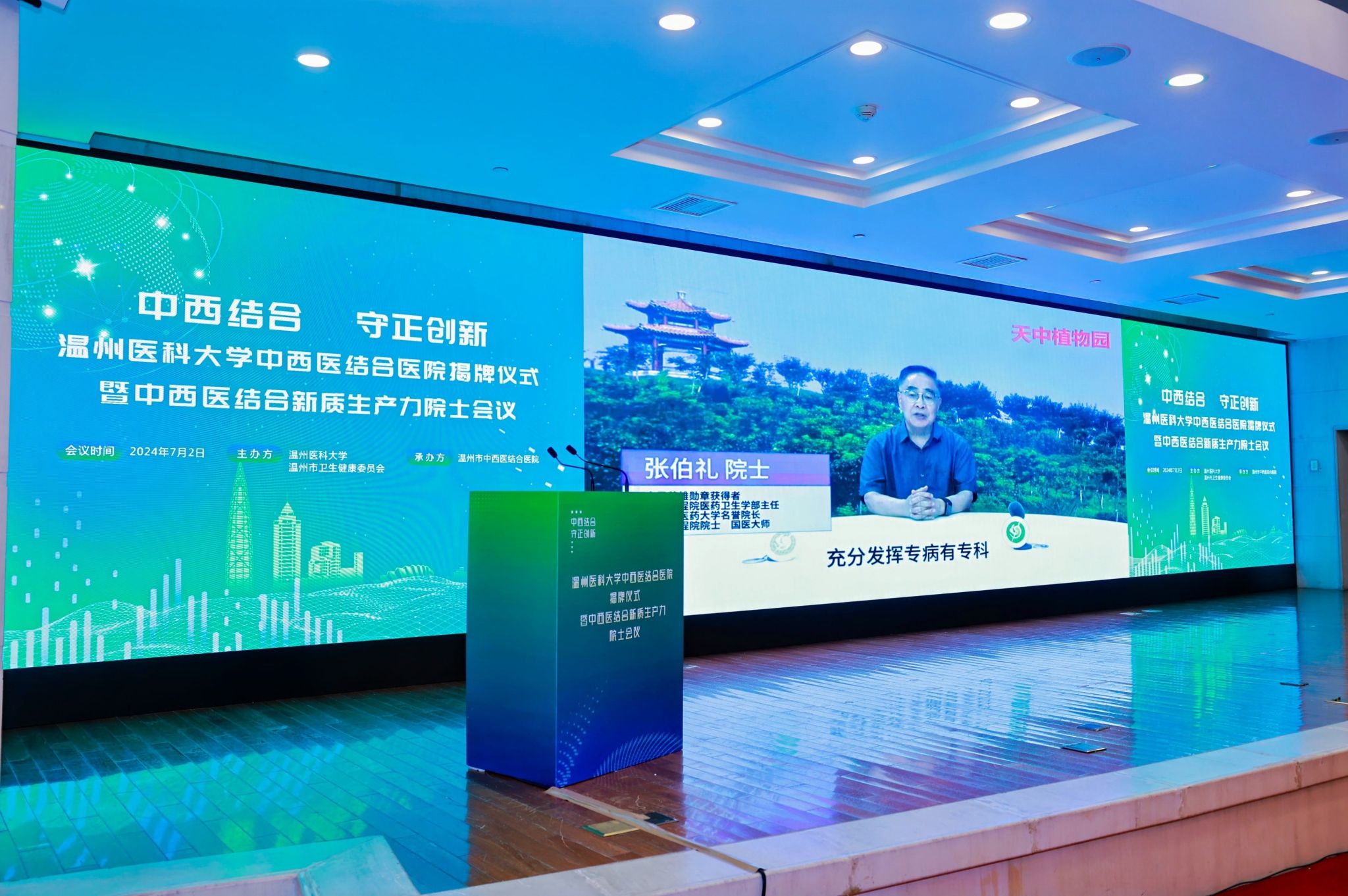 浙江省副省长、温州市委书记张振丰作出批示。中国工程院院士张伯礼,中国科学院院士葛均波、王建安视频致辞。中国工程院院士肖伟、朱立国出席仪式。