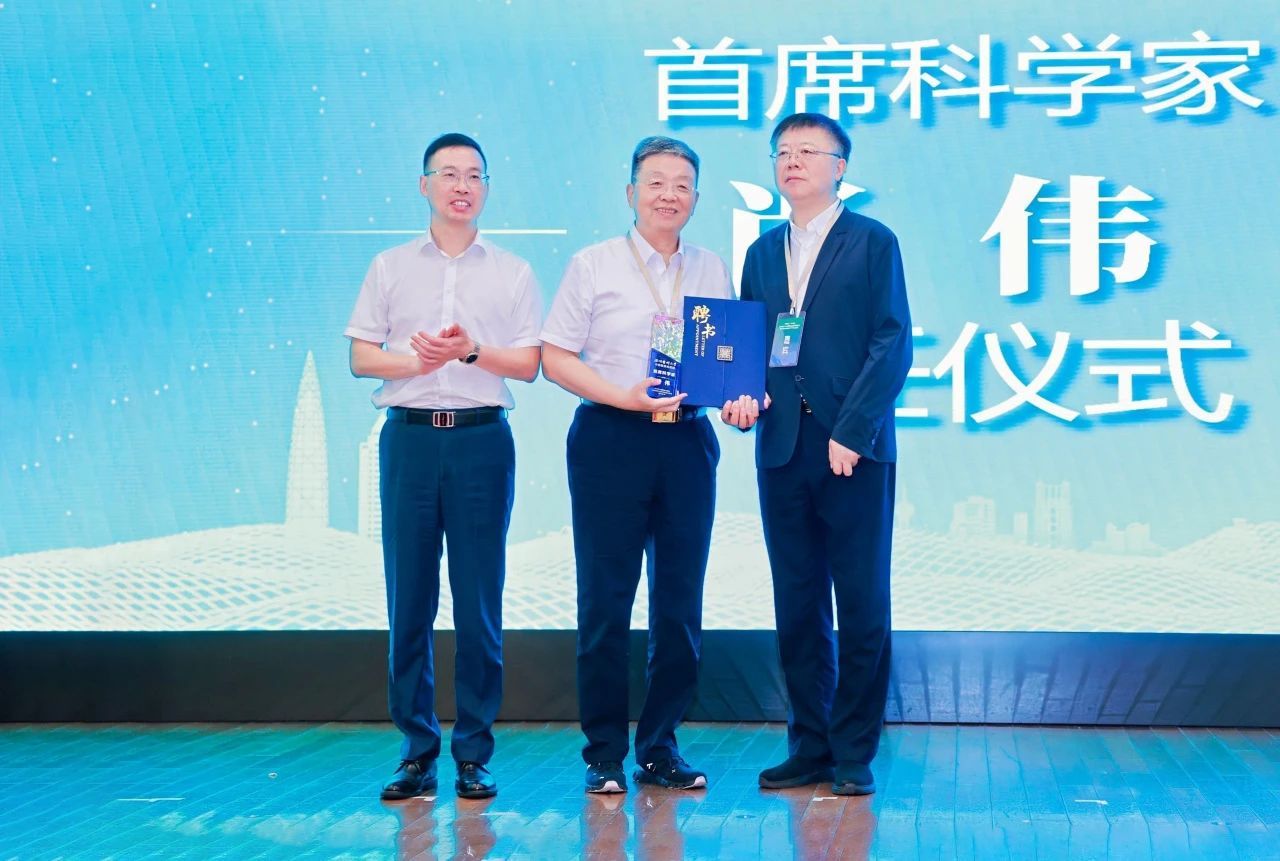 (肖伟被聘任为医院首席科学家,李校堃、王晓春为肖伟颁发聘书)