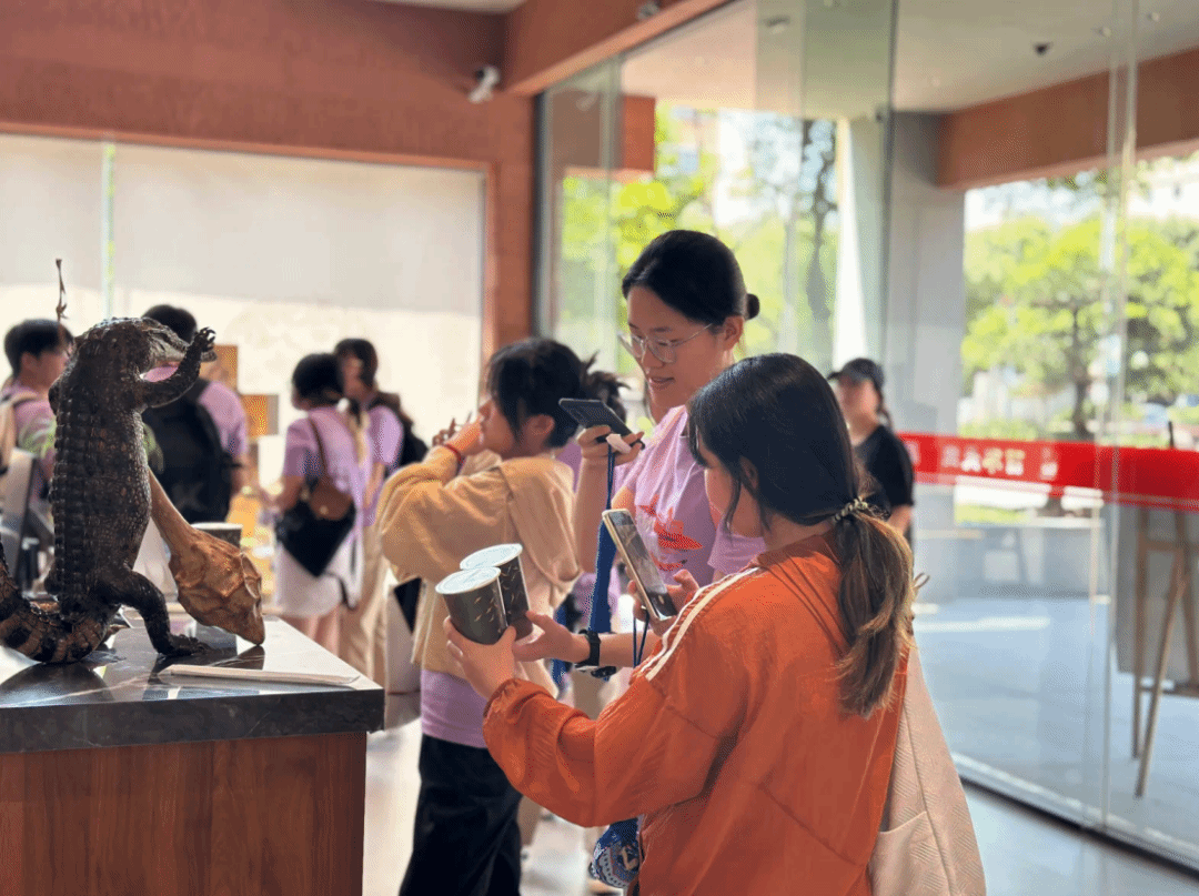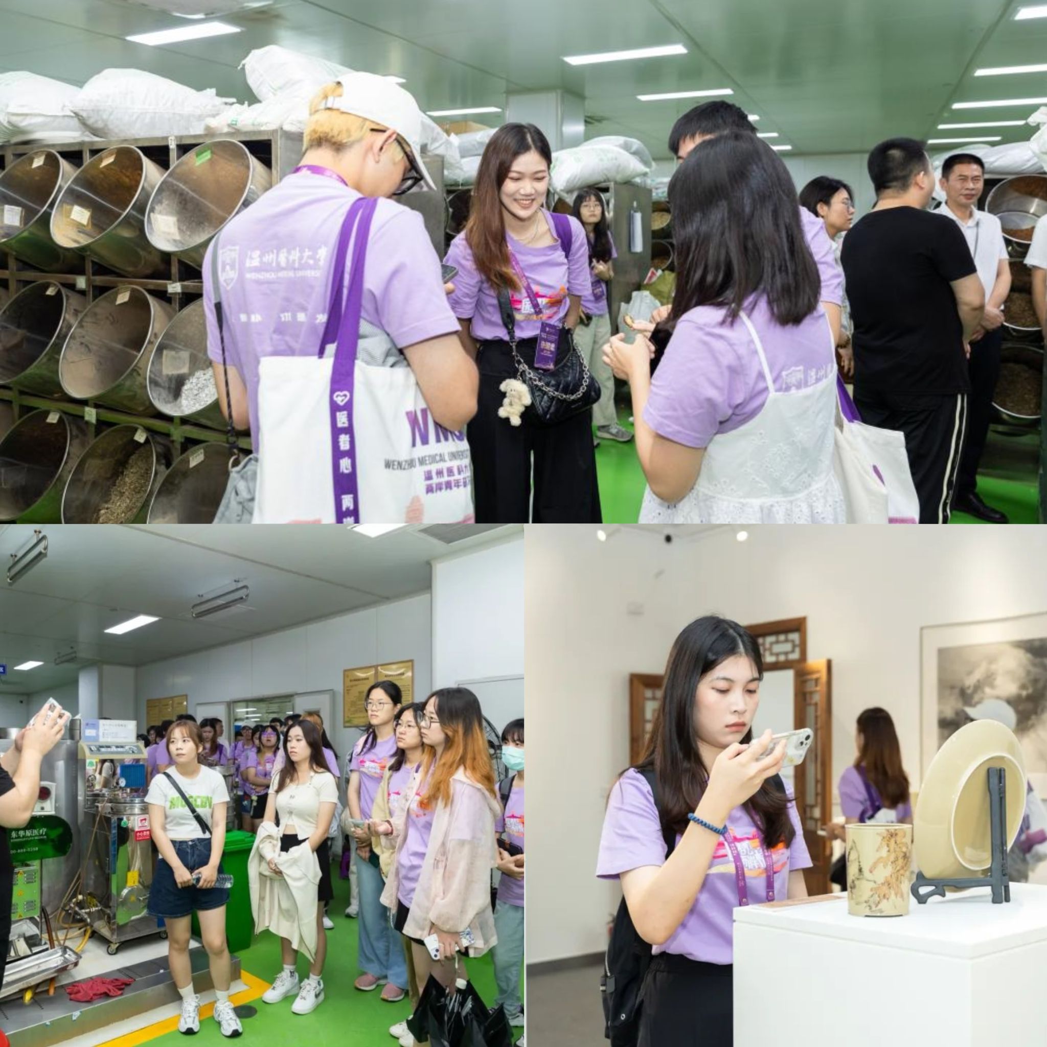 传统中医药文化馆、药食同源馆、野山参馆、养生药膳体验区、养生茶实践基地……在长生老号健康有限公司,同学深入了解企业发展历程和开车漫画,切身感受到了古人养生的智慧,更加深了对中华传统养生文化的印象。“在馆内还有各种中医药文物、化石、古代的药用工具等,以前都没有见过,真的收获很多!”台生蔡瑞谦兴奋地说。研习营一行还来到一诺药业所在的中国中药温州智能配送中心,深入企业基层生产链,了解中草药是如何走进千家万户,方便群众使用。一间间生产车间有序运行,从处方收发、煎药到药剂粉末与口服药液制作区,从接单、复核、浸泡、煎煮到包装的流水线,都展现了当今中医药产业与现代互联网技术的完美融合,为中医药在当代社会中的发展注入了新的动力和活力。